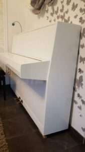 - Badezimmer: Spezielle wasserfeste Folien eignen sich ideal für feuchtere Räume wie das Badezimmer. Erneuern Sie Schränke und Regale in wasserresistenten Materialien, die gegen Feuchtigkeit gewappnet sind.