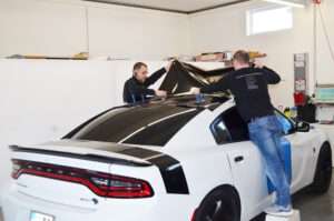 - Zuschneiden der Folie: Passgenaues Zuschneiden für die gewünschten Fahrzeugbereiche.